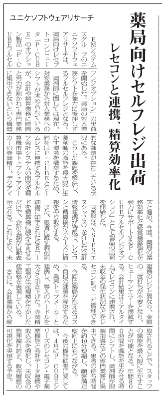 「P-CUBE フルセルフレジオプション」が【薬事日報】に掲載されました。